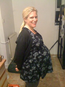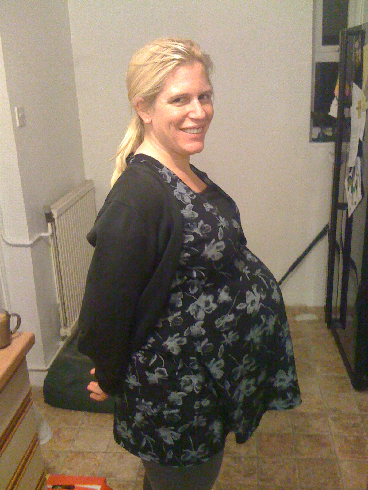 A mother who was informed today that she looked as though she might be about to drop at any minute and who has another 15 weeks to go.