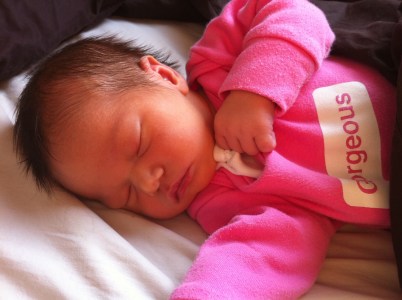 Arrived at 12:45 pm on Thursday 21st April, via planned cesarian section, at 39 + 6, weighing 8lbs and 2oz. I am still alive and she is thriving, so as predicted, I do feel a little silly for publicly stating quite how terrified I was by the whole process. Although I am more than aware that I have a propensity towards melodrama, my fears were not entirely unfounded. I do have a history of hemorrhage, the final few visits to the midwife and consultant involved much talk of cross-matching of blood and being aware, that my previous section had involved a right-angled incision which had nicked a vessel.
