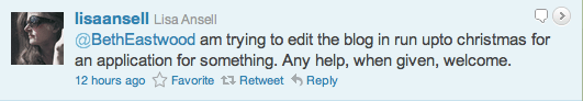 So anyway, having been armed with that choice nugget of gossip as well as the fact that Lisa was looking for an unpaid volunteer to help her edit her blog in time for the Orwell Prize, I did sneak a look at her twitter feed to see if this was true.