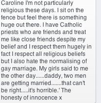 Miserable sinner, aspiring saint, propensity towards melodrama and general bawdiness, probably not the best example of holiness, but trying nonetheless. A woman who wears her heart on her sleeve and talks a great deal of nonsense. You're not going to gain any profound insight from my ramblings and fulminations, but you're welcome to share the journey. View all posts by blondpidge